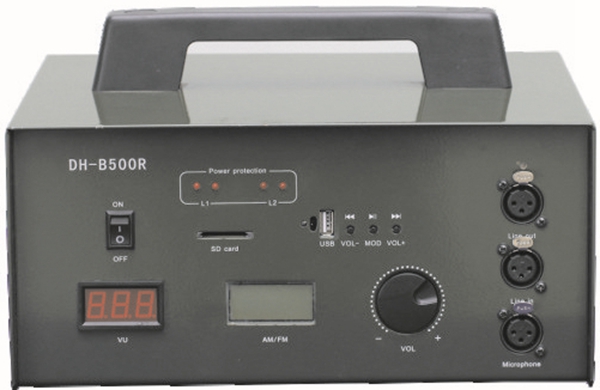 ? ■多輸入方式:內(nèi)置無線信號(hào)(調(diào)頻調(diào)幅)接收,一路U段無線接收,一路有線話筒輸入口,一路線路輸入口;